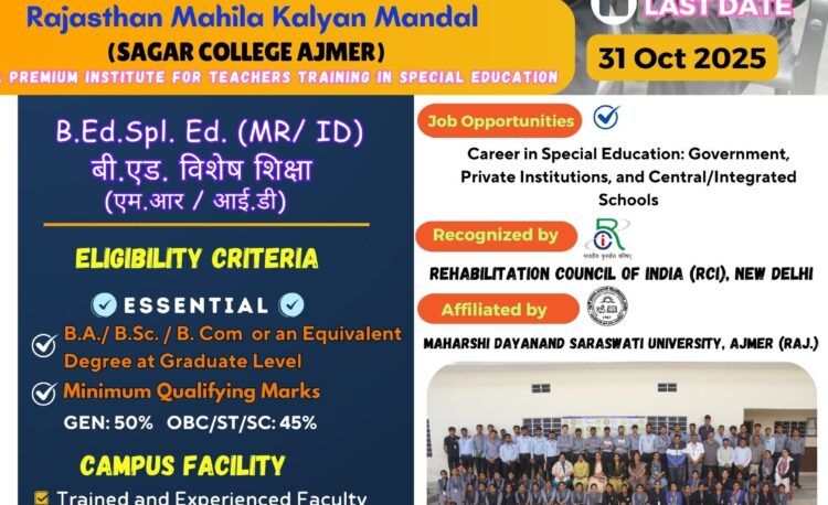 B.Ed.Spl. Ed. (MR/ ID) (ADMISSION OPEN NOW) Admission Open NowSagar College Ajmer – B.Ed. Special Education (MR/ID) Calling all passionate …