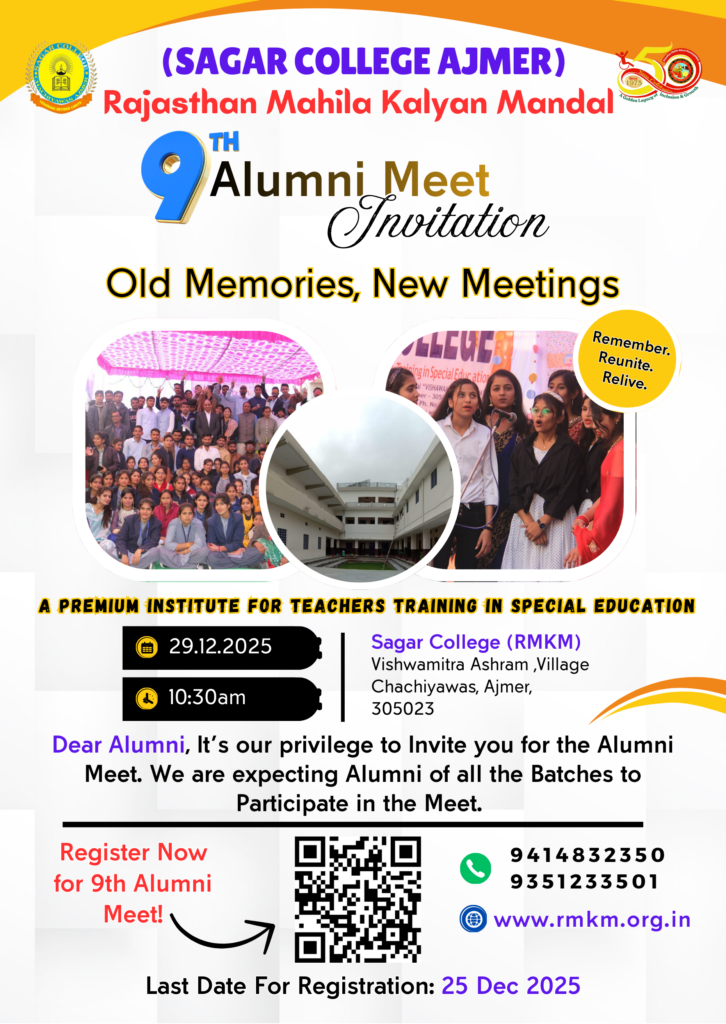We are delighted to invite all our esteemed Alumni to the 9th Alumni Meet of Sagar College (RMKM), Ajmer.